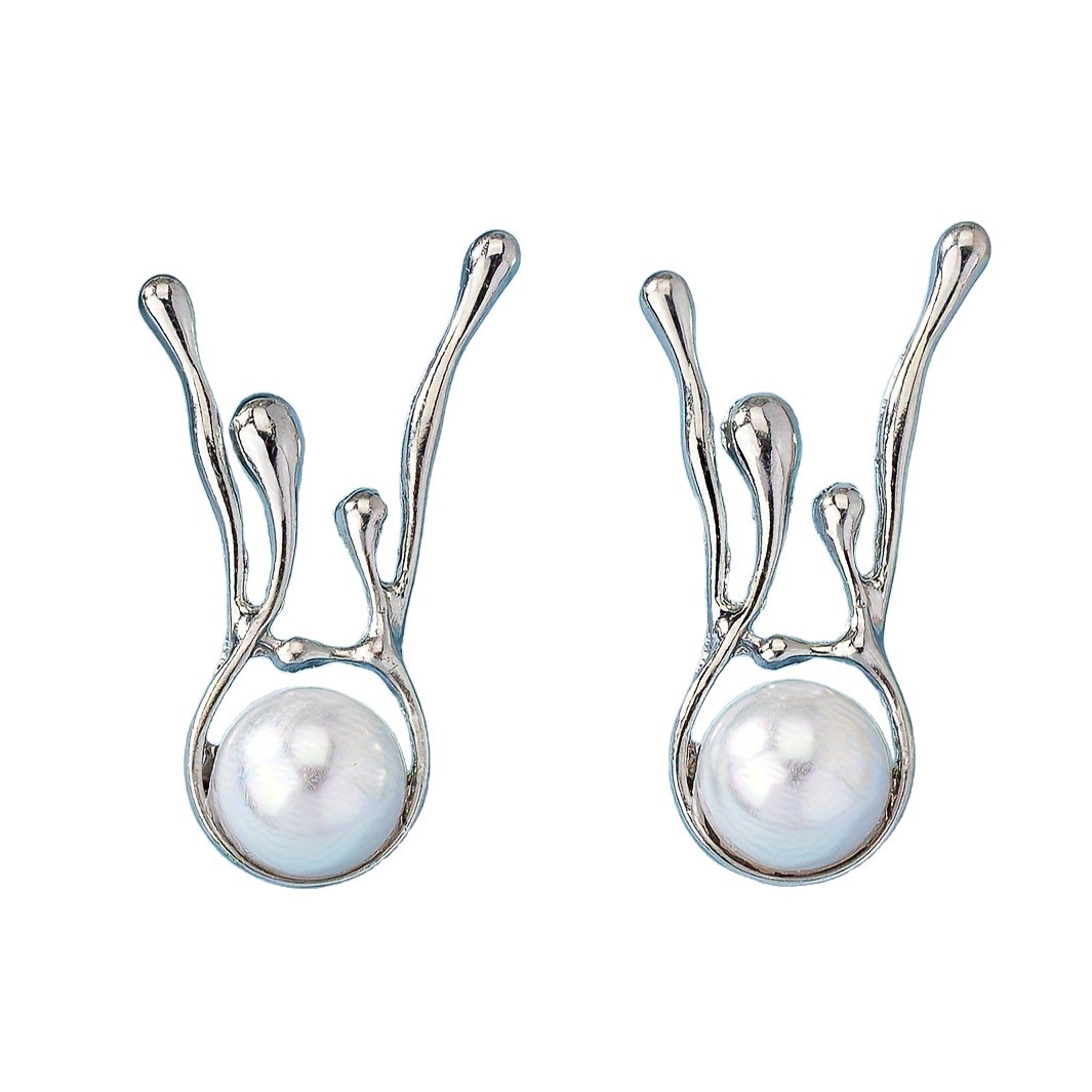 Fashionable Exaggerated Yet Minimalist Deer Antler Inspired Faux Pearl Irregular Earrings