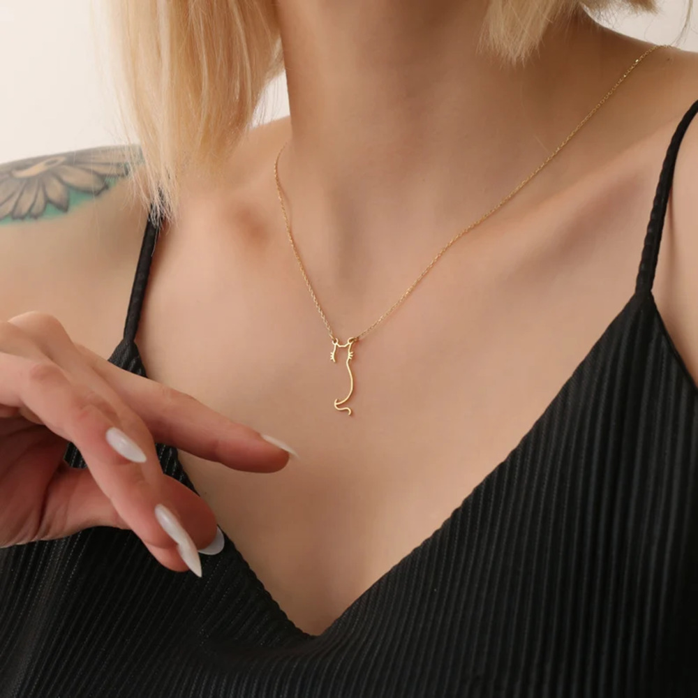 Stainless Steel Cartoon Cat Necklace Stylish Cute And Intricately Cutout