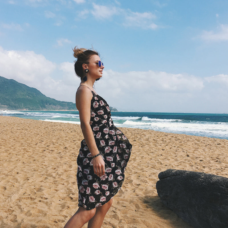 USA SIZE Sling V-neck long dress printed chiffon backless beach skirt